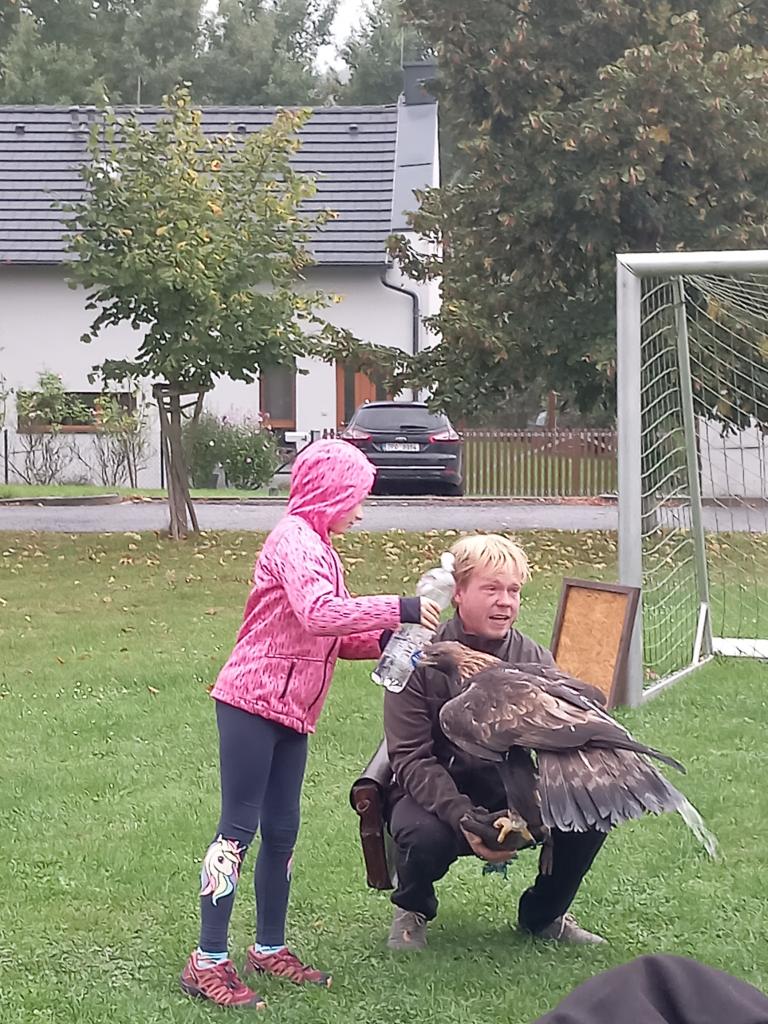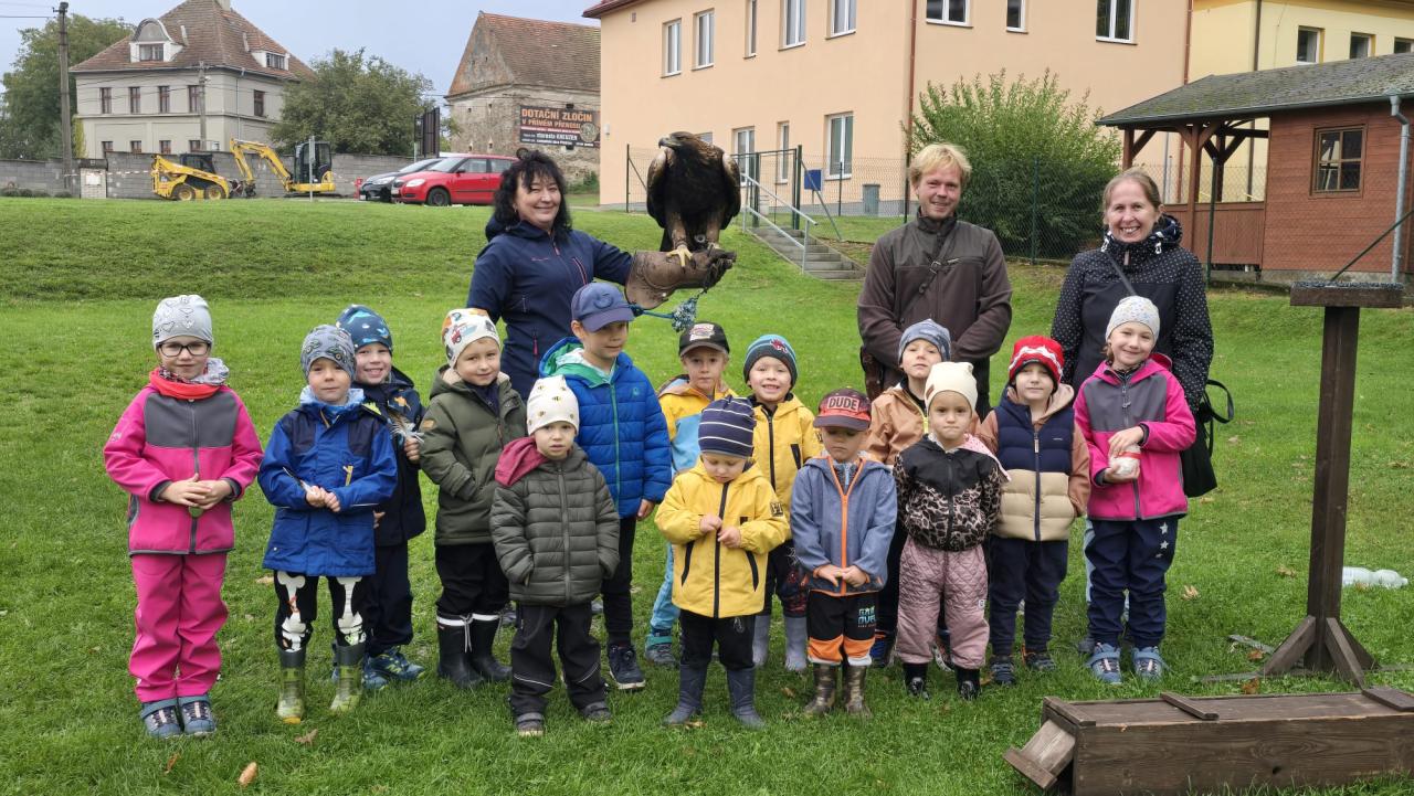 V pátek 26. září 2025 se na hřisti uskutečnil zajímavý program zaměřený na sokolnictví. Děti z mateřské školy měly možnost seznámit se s různými dravci a sovami, které se vyskytují v České republice. Během akce se dozvěděly fascinující informace, jako například to, že káně Harrisova žije v rodinách a loví společně. Seznámily se také s tím, že sokol stěhovavý je nejrychlejší zvíře na světě a orel mořský patří mezi největší ptáky Evropy. Program byl obohacen praktickými ukázkami a zajímavým komentářem, který podněcoval aktivní zapojení všech zúčastněných. Děti se tak staly součástí výjimečné vzdělávací zkušenosti.