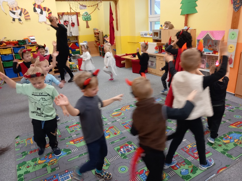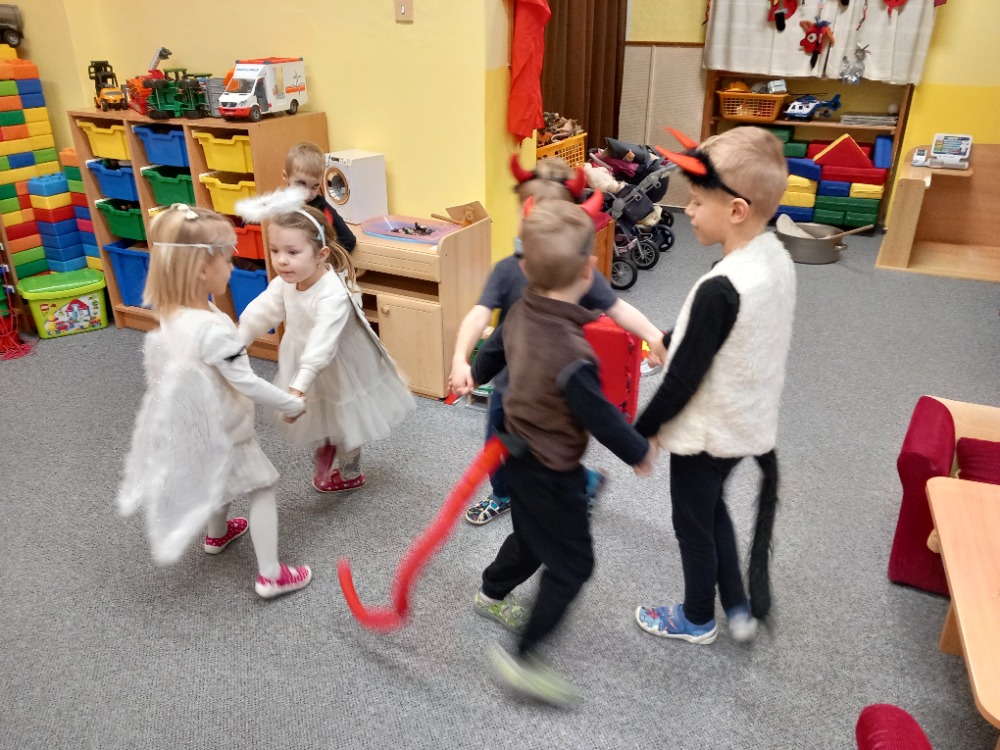 V pátek 5. prosince 2025 se v naší mateřské škole uskutečnilo veselé dopoledne, během kterého se všichni proměnili v čertíky a andílky. Děti si užily spoustu zábavy při tanci, soutěžích a také při zpěvu a recitaci. Atmosféra byla velmi příjemná, a potěšila nás i nadílka od Milkuláše. Akce podpořila přátelské vazby mezi dětmi a přispěla k rozvoji jejich kreativity a týmového ducha.
